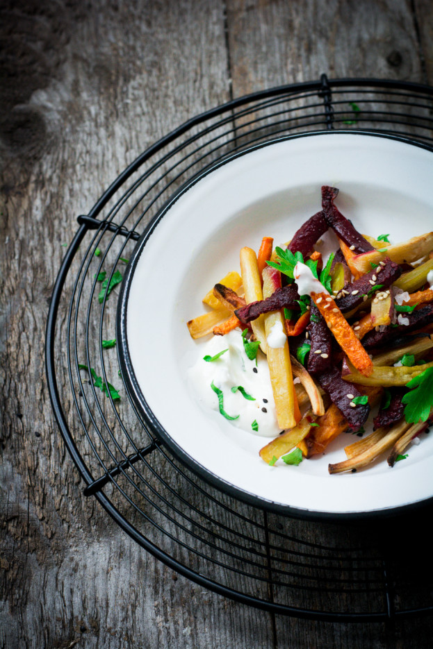 Der Klassiker zum Burger: Pommes. Kleine, frittierte oder im Ofen gebackene Sticks aus Kartoffeln. Wer auf dem Markt auch mal jenseits der klassischen Knolle Ausschau nach tollen Burger- oder BBQ-Beilagen hält, der findet noch allerhand andere Gemüsesorten, die sich ähnlich gut für hausgemachte Ofenpommes eignen wie klassische Kartoffeln. Rote Beete, Süßkartoffeln, Karotten, Pastinaken und Petersilienwurzeln sind dafür zum Beispiel gerade in den Wintermonaten prädestiniert!