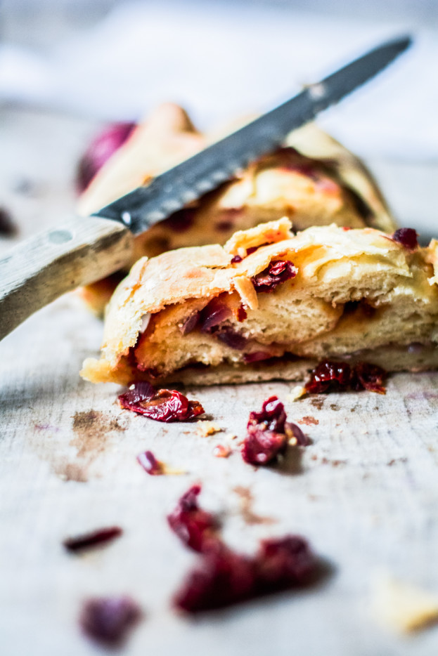 Was ich an Partys bei Freunden neben viel Quatscherei, freudigem Wiedersehen, Witz, Spaß und dem Sektchen oder Prosecco im Glas so sehr schätze? Das Buffet! Ich find`s wirklich überragend, wenn sich jeder was Schönes einfallen lässt und was Selbstgekochtes, Gebackenes oder Gewerkeltes aus der Küche mitbringt. Auf diese Weise bin ich vor einigen Monaten auf ein gefülltes Zwiebelbrot aufmerksam geworden…
