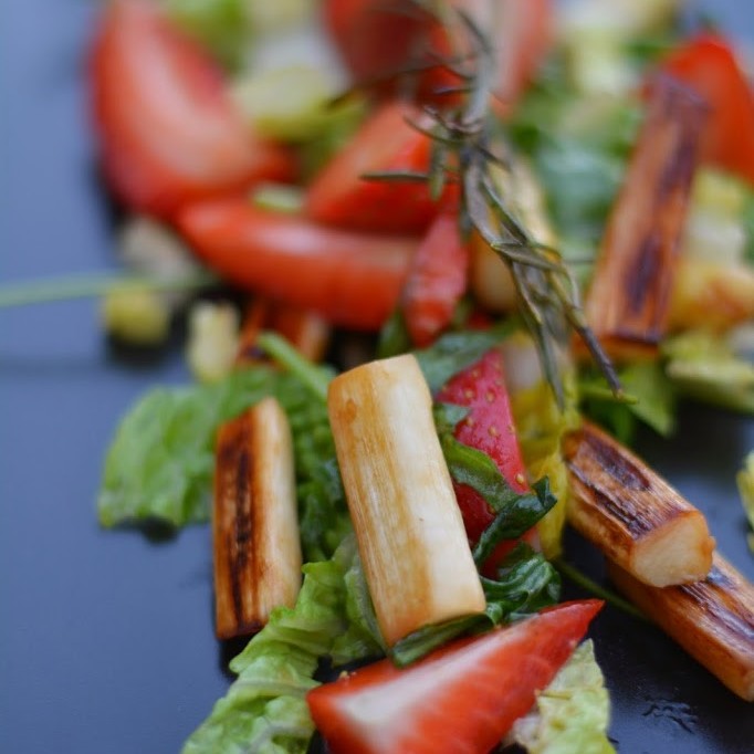 Spargelsalat mit Erdbeeren und Rucola