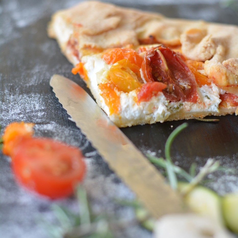 Tomatengalette Herzhafter Gemüsekuchen mit Käse und Kräutern   Sie werden ähnlich zubereitet wie Pizza, unterschieden sich aber in zwei wesentlichen Details: knusprig gebackene Galettes – wahlweise mit herzhafter oder süßer Füllung. Während Pizza klassischerweise mit dünnem Hefeteig zubereitet wird, verwendet man für Galettes einen dünn ausgerollten Mürbeteig. Zweites Detail: Der Pizzateig wird komplett belegt und…