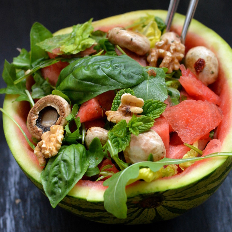 Wassermelonensalat mit frischer Minze und Walnüssen