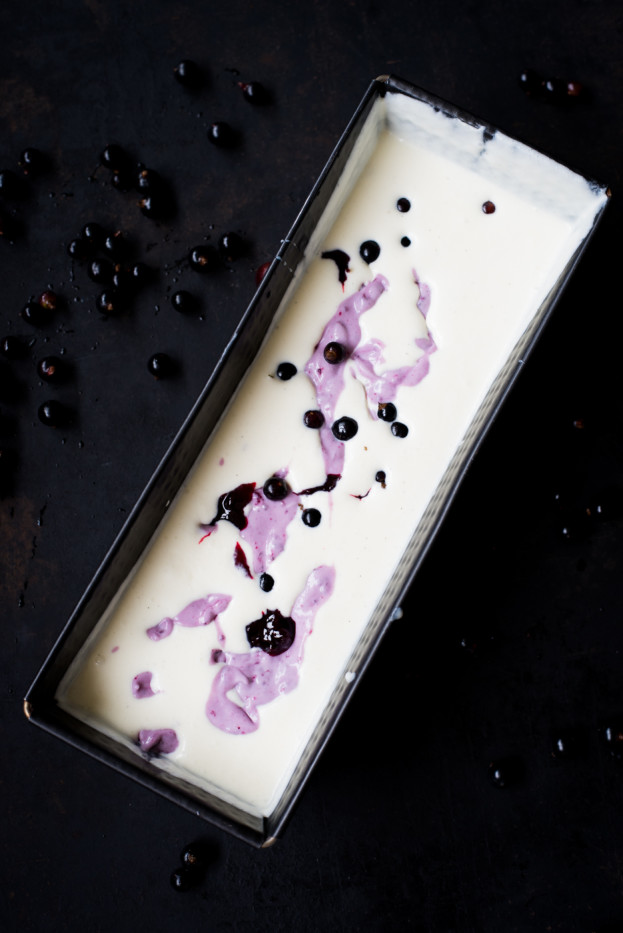 Cremiges Vanilleeis mit schwarzem Johannisbeerstrudel (ohne Eismaschine)